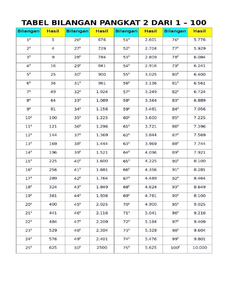 Dalam matematika diketahui bahwa kuadrat merupakan hasil perkalian suatu bilangan dengan bilangan itu sendiri. Misalnya kita ingin mencari akar dari 36 itu artinya kita harus . Akar pangkat 2 · 1²=1 11²=121 21²=441 31²=961 41²=1681 · 1 3= 1 113=1.331 213=9.261 313=29.791 413=68.921 · 23=8 123=1.728 223=10.648 323=32.768 423=74.088 · 33=27 . Akar pangkat 2 dan 3. Agar dapat menghitung akar kuadrat lebih mudah dari akar pangkat 3, 4 ataupun 5.