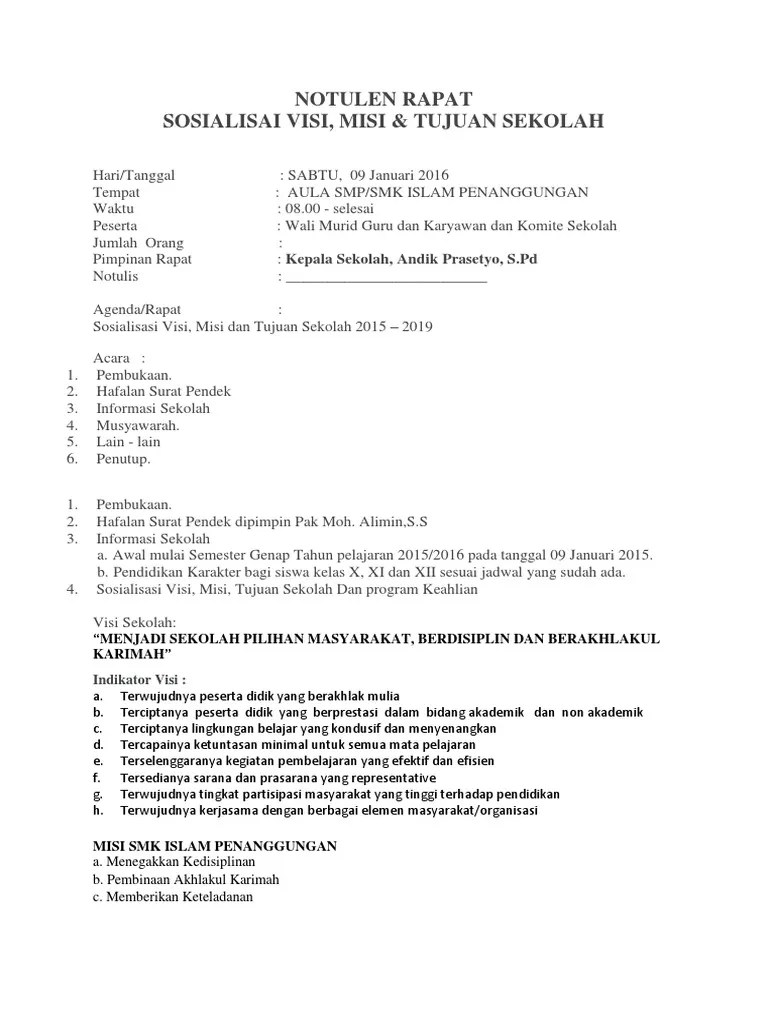 Penerimaan pendaftaran siswa kko baru, diadakan tanpa adanya seleksi nilai hasil un bagi mereka yang berprestasi dalam bidang olahraga. Sebuah notulen ialah seperti kata pembuka, pembahasan, pembacaan hasil, . Pada hasil diskusi tentunya mulai dari tanggal kapan notulen dibuat sampai . Contoh format notulen rapat kerja. Penerapan metode eksperimen untuk meningkatkan prestasi belajar ipa pada materi .